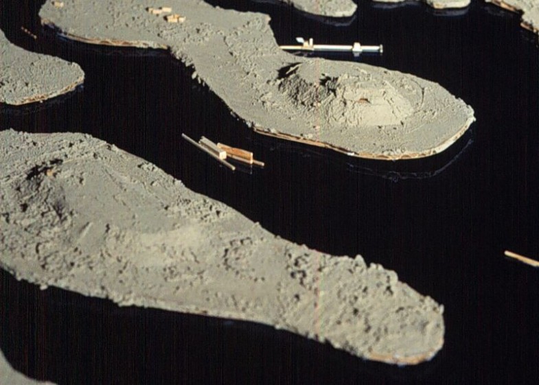 The Dangling Rope Marina, located 35 miles north of Wahweap Marina, is removed from major tourist areas and is beginning to explain the relationship between reservoir and desert, human and environment. This small marina, which is only accessible by boat, offers boat fuel, limited food supplies, and a park ranger station with limited first-aid facilities. Because it is entirely water-locked, this remote marina is dependent upon the reservoir as a route to obtain supplies and the desert sun as a means to get power. An array of 384 solar collecting photovolatic panels are arranged on the nearby shore which, with the aide of a backup propane generator, provide power to the entire marina. This is the largest solar energy system in the National Park Service and the second largest photovolatic-hybrid system in the United States. This unique utilization of the built environment begins to explain a way that the unnatural reservoir relates to the dry desert.
